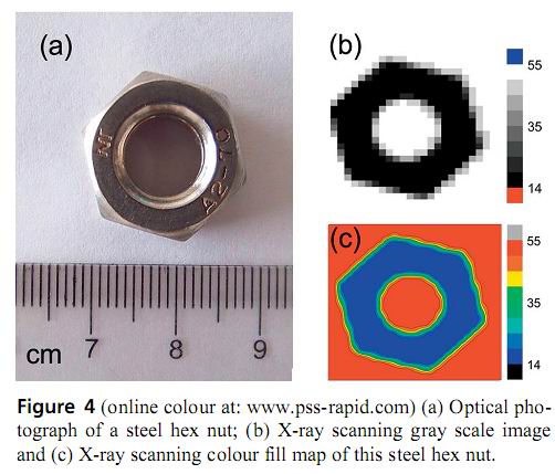 最近,中科院苏州纳米技术与纳米仿生研究所纳米加工平台陆敏副研究员及其团队使用纳米所参股公司苏州维纳科技有限公司提供的Fe掺杂自支撑GaN单晶片,经过不断的器件模拟设计研究和探测器微加工工艺探索,终于成功研制出Fe掺杂自支撑GaN基X射线探测器原型器件。该探测器采用垂直结构、上下电极,在无避光环境下,偏压为200V时,X射线开启后的光电流迅速上升,与暗电流之比高达180,并且实现了对六角钢制螺母的X射线扫描清晰成像。