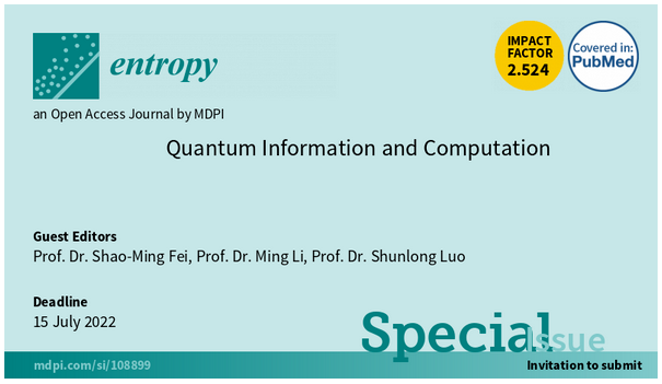 Entropy:首都师范大学费少明教授、中国石油大学李明教授及中科院骆顺龙研究员主持特刊—量子信息与计算 | MDPI 特刊征稿 |