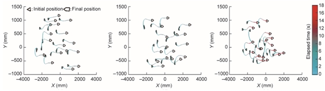 为系统性研究反向连边在网络同步中所起的作用,文章首先开展了分布式无人艇集群朝向同步实验,验证了部分反向连边能够延长艇群达到一致的时间。