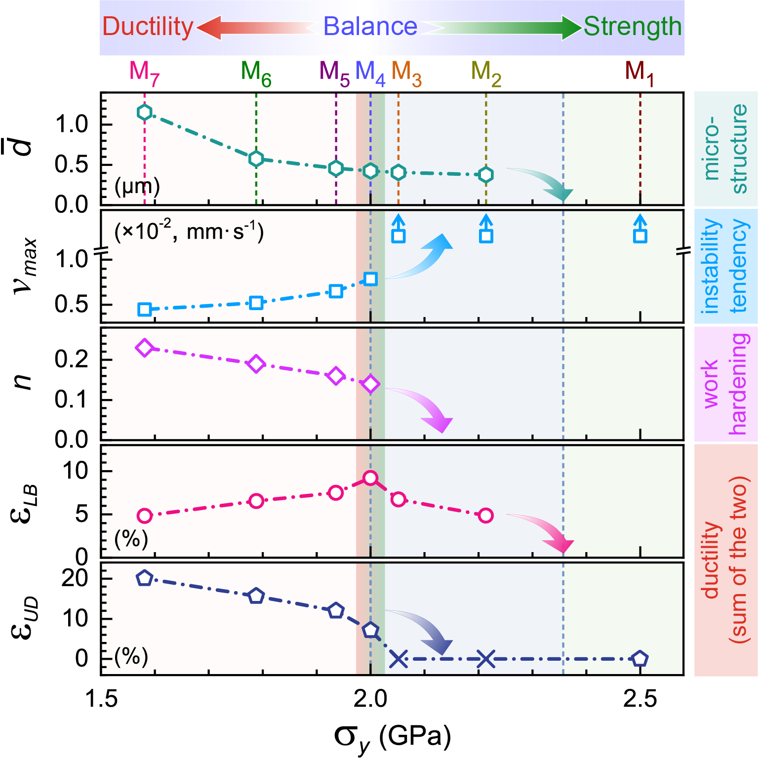 金属材料永恒的力学性能追求是同时兼具高强度和大塑性。然而,高强度往往导致低塑性瓶颈,其原因是高强度下位错难以形成并储存,严重降低了加工硬化能力。为此,中国科学院力学研究所武晓雷研究员领导的研究团队,提出了一种加工硬化新策略,即利用并控制已经发生的塑性失稳实现加工硬化,并据此策略获得了记录级力学性能。
