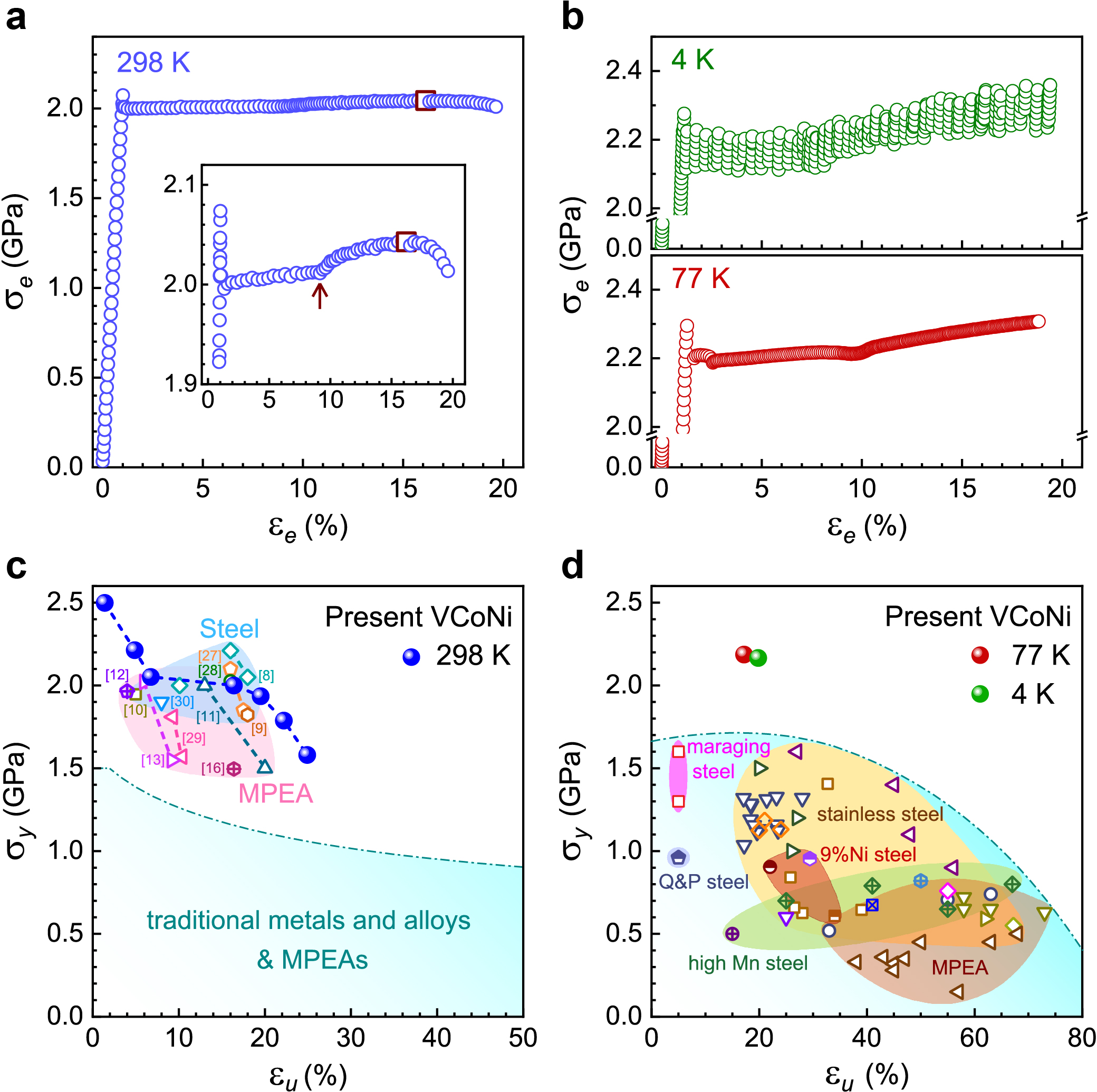 图2:室/低温力学性能和强度-塑性匹配。