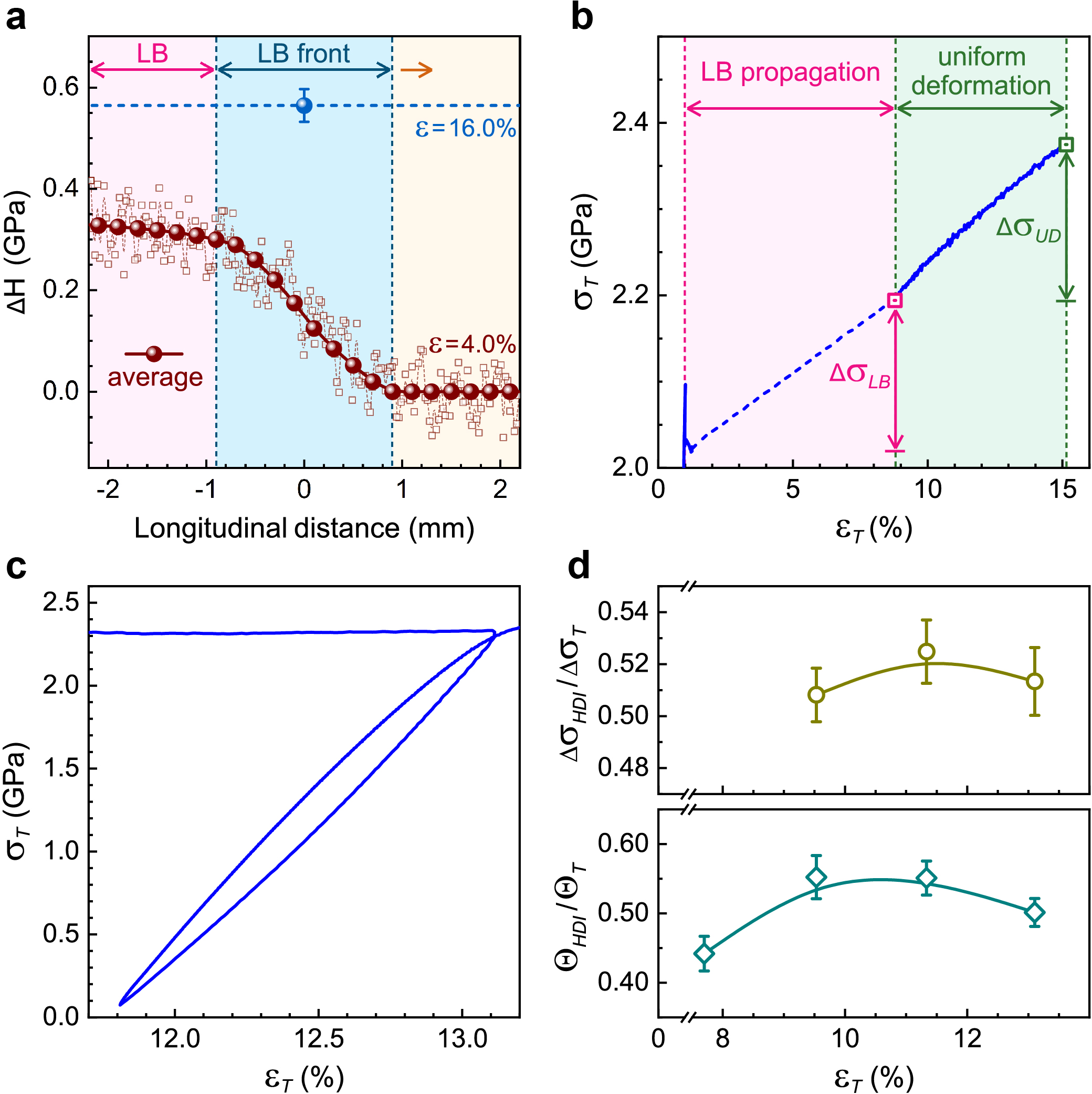 图5:吕德斯带扩展和均匀变形过程中的加工硬化。