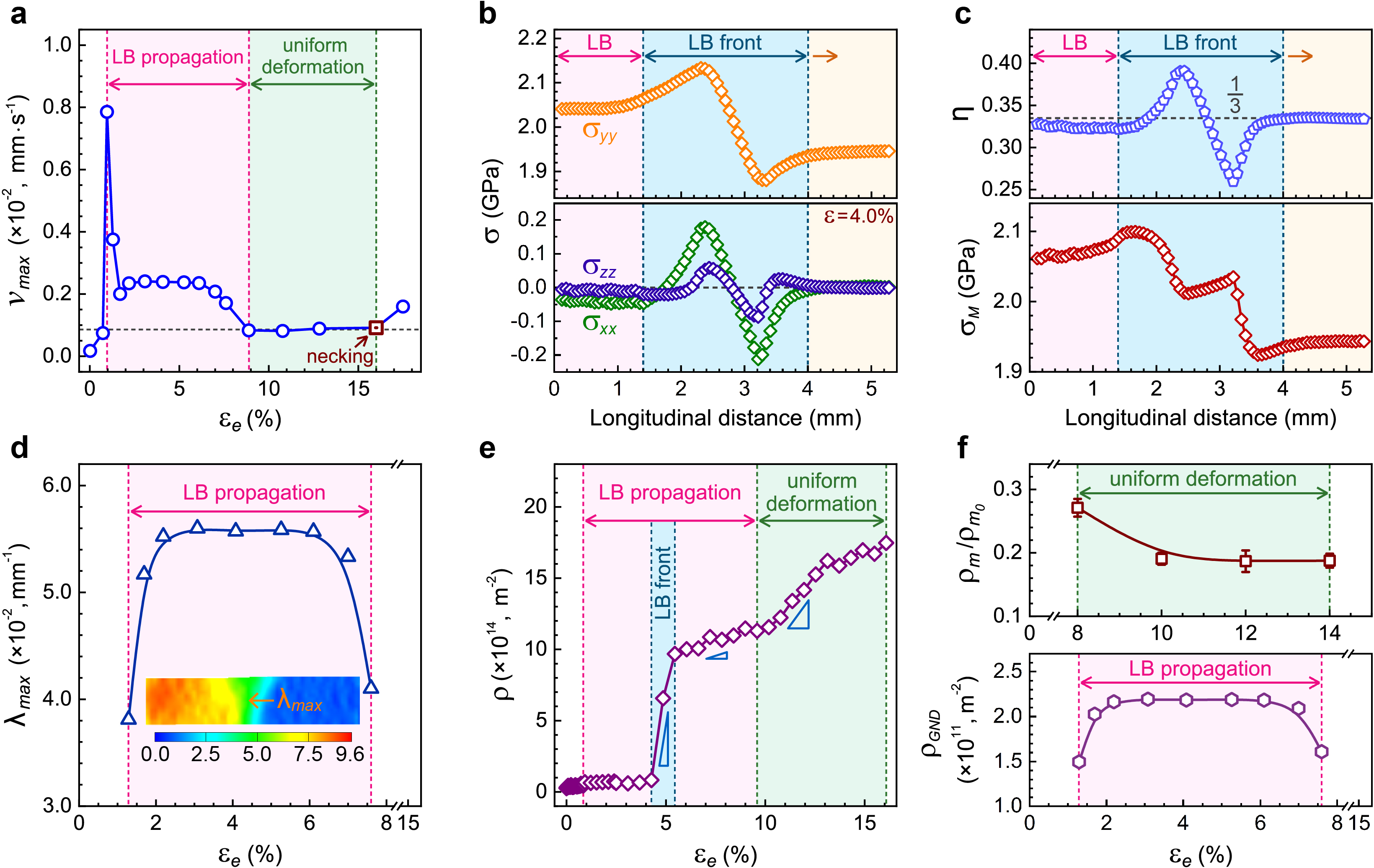 图3:吕德斯带前端的早期颈缩、塑性响应和位错增殖。