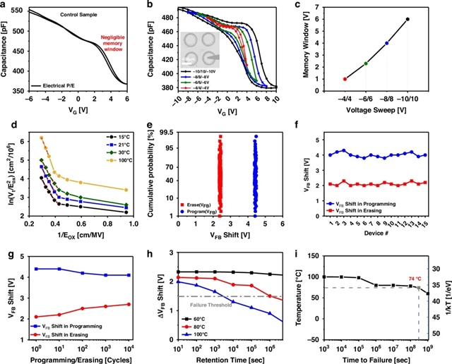 团队通过电学表征证明了其非易失性存储特性(如图3),以及通过光学表征揭示了其基于电荷捕获机制的光感能力(如图4)。