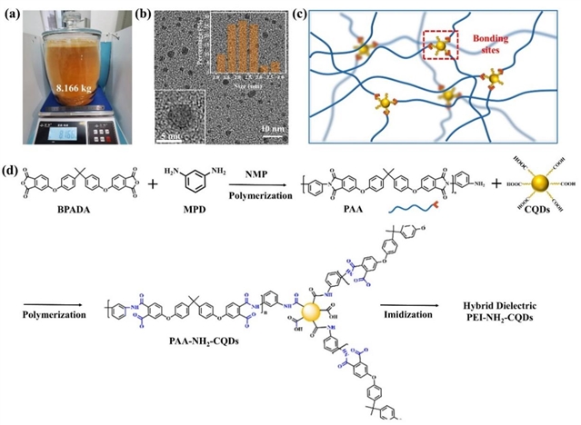 (3)使用低成本醛醇缩合法生产CQDs的公斤级生产为未来大规模制造可靠的电介质提供了一条有前景的途径。