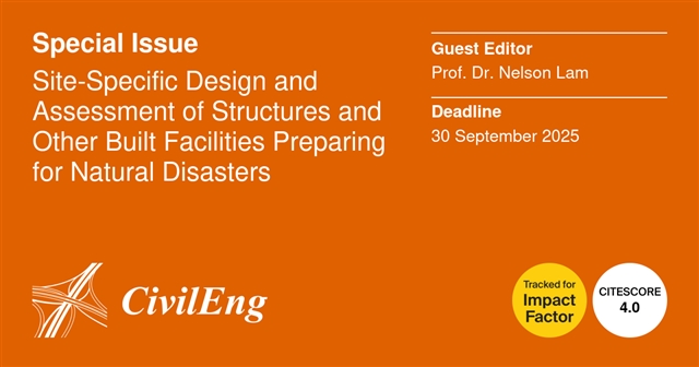 基于此,CivilEng 邀请了墨尔本大学Nelson Lam教授,合作建设特刊“Site-Specific Design and Assessment of Structures and Other Built Facilities Preparing for Natural Disasters (针对自然灾害的建筑设施的场地设计与评估)”。本特刊旨在征集有关建筑设施在自然灾害准备方面的场地设计与评估的最新研究成果,重点关注建筑设施的场地设计与评估方法,这些方法考虑了区域和场地特定因素,以提高建筑设施在自然灾害中的韧性。特刊涵盖但不限于以下主题: