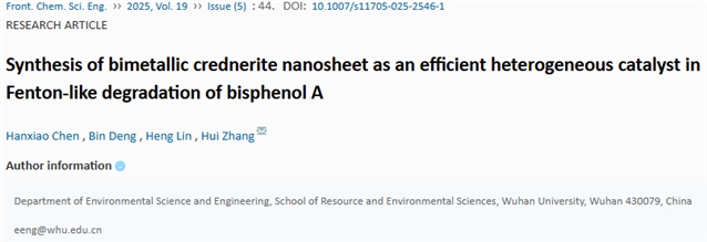 Hanxiao Chen, Bin Deng, Heng Lin, Hui Zhang. Synthesis of bimetallic crednerite nanosheet as an efficient heterogeneous catalyst in Fenton-like degradation of bisphenol A. Front. Chem. Sci. Eng., 2025, 19(5): 44 https://doi.org/10.1007/s11705-025-2546-1