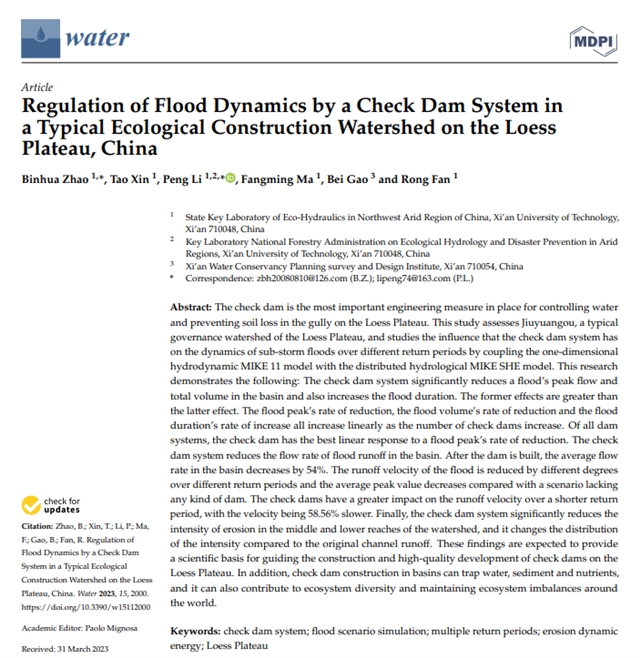 淤地坝建设显著改变了流域内径流洪水拦蓄过程与侵蚀能量空间分布特征。研究淤地坝对典型人工治理流域洪水动力过程的调控机制具有重要科学价值:其研究成果既可用于现有淤地坝体系的优化改造与防护加固,又能有效识别工程缺陷 (这些缺陷在遭遇特大洪水时尤为凸显);同时为未来淤地坝需要修建和加固的部位 (径流冲刷能力强) 提供重点整治和规划设计布局。
